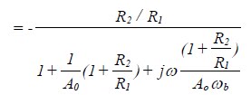 Ao tiene siempre valores muy elevados y el término 1+R2/R1, que representa la ganancia en lazo cerrado, tiene valores limitados que pueden alcanzar los 103. Con ello el segundo término del denominador de la ecuación anterior será siempre bastante menor que la unidad, con lo cual, haciendo que WT = A0 Wb se podría escribir la expresión anterior en la forma...